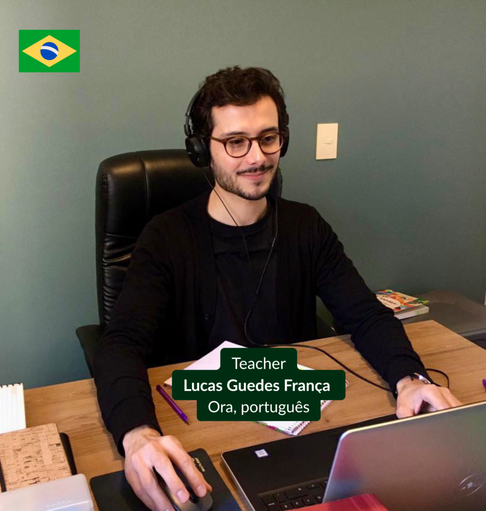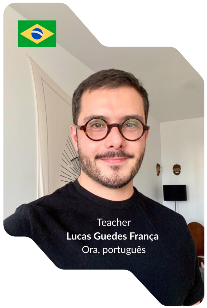 Ora, português is an online Portuguese school designed for people around the world who want to learn real Brazilian Portuguese and start speaking from the very first lesson. Founded by Lucas Guedes França, a native Brazilian teacher with extensive experience teaching languages, the school offers dynamic and practical lessons while also introducing students to Brazilian culture and everyday communication. Lucas has a background in language education and a postgraduate specialization in Psycholinguistics, which helps him create effective and engaging learning experiences. Having also taught English and speaking several languages himself, he understands the challenges of learning a new language and enjoys helping students from different cultures gain confidence while speaking Portuguese.